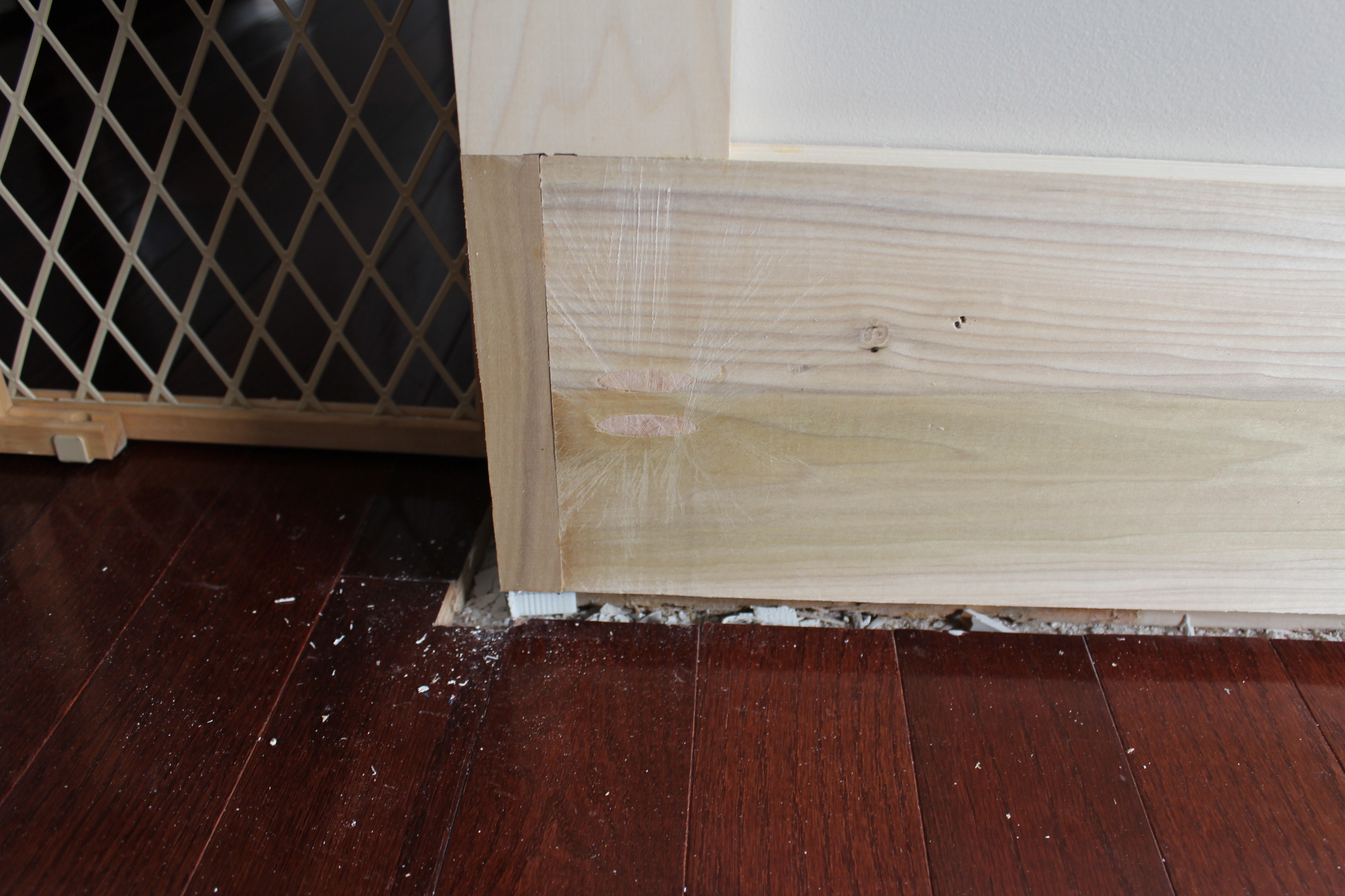 If that wasn’t enough trouble, I also managed to cut one of my bottom boards too short!!  Luckily, I think I can get away with screwing in an extension piece.  Plus, if you look closely, you can see two pocket holes that I plugged (Kreg also makes plugs).  I had to flip the board over when I was making the panels and I didn’t feel like spending another twenty some bucks for a whole new board.  If I was staining this, I’d be screwed.  Since I’m painting it though, I can add some wood putty, sand it and I’m good to go!