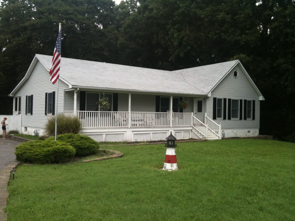 Since we haven’t done many curb appeal posts this summer, I’m borrowing one from my mom’s near-the-beach house. The exterior of the house is a little on the bland side. We posted about the interior work here as well about the concrete countertops. Admittedly, we haven’t done much with the outside. Here’s a recent shot.