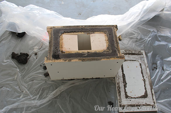 I let the concrete cure overnight and then just started popping the sides off the form with a crow bar and a hammer. The article makes it seem like you can just pull the inner form out from the outer form. Yeah, good luck with that.